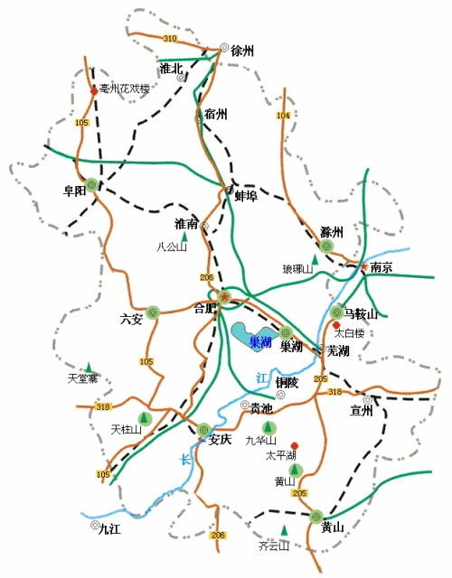 安徽简介 安徽省位于华东地区西北部。春秋属吴、楚等国。汉分三州,唐属三道,元归两行省,明直隶南京。清初1667年取安庆、徽州二府字首建安徽省。因境内西南部有霍山,也叫皖山,故简称皖。省会合肥。 安徽主要旅游城市之间的距离合肥——黄山:378公里芜湖——黄山:281公里黄山——黟县:53公里黄山——休宁:18公里 安徽旅游简图 领略安徽