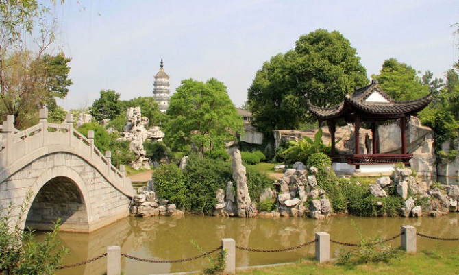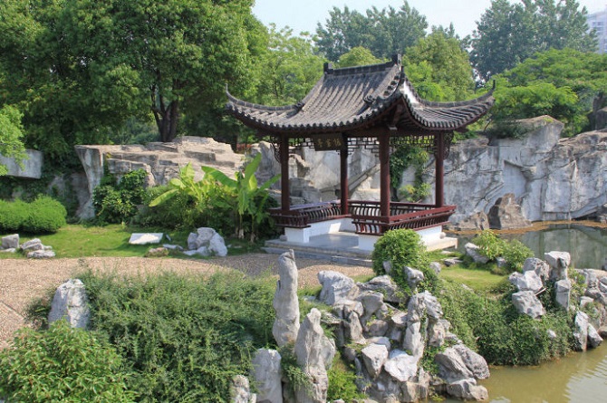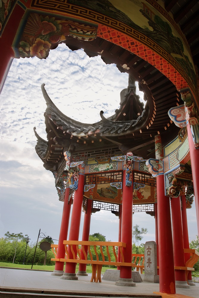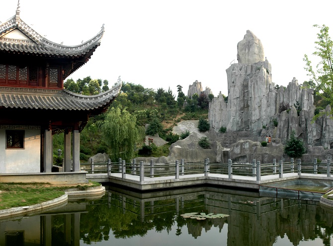 整个徽园以安徽行政版图为基本构图框架,以长江、淮河为分隔,分为皖南、皖北两片园区,涵盖了安徽省各个地市的自然和人文景观,既相对独立成园,又与相邻园和整个园区相得益彰。