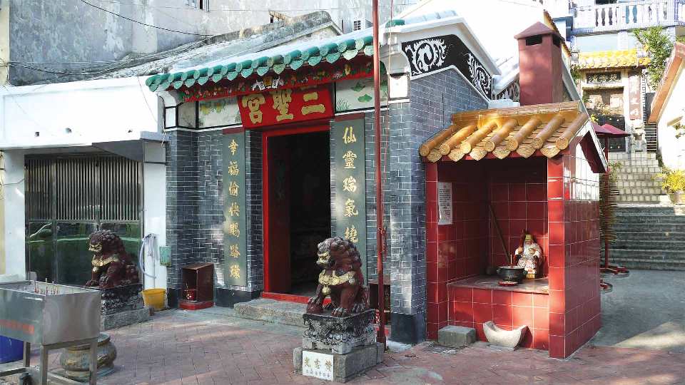 三圣宫又称金花庙,早于同治四年(1865年)已建成。庙宇建筑规模较小,只有一进深,从门外对联可以得知路环的旧称盐湾以及曾经产盐的历史。昔日,路环有“盐灶”、“盐灶湾”及“回澜”等别称。三圣宫供奉金花娘娘、观音娘娘及华光大师。二百多年前,渔民搬金花娘娘神像到路环兴建庙宇,三圣宫因而建成。相传金花娘娘有送子之神力,同时保佑小孩健康成长,因此吸引善信来参拜。2002年,该庙受风雨吹袭后重修,庙内挂有一座具历史价值的珍贵铜牌古钟,是镇庙之宝。沿三圣宫位处的船人街步行,可看到澳门仅存的棚屋,以木材及铁皮搭建而成,富有渔村特色。