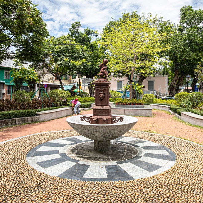 恩尼斯总统前地串连路环旧市区的重要街道,面积不大,广场是为了纪念首次到访澳门的葡萄牙总统恩尼斯而命名。有趣的是,前地中央竖立了一尊爱神丘比特雕像,曾经吸引电视台到此为剧集取景。广场内种植多种植物,绿树成荫,被当地居民称之为“花园仔”。 在恩尼斯总统前地周边有多间地道的特色美食、鱼产品及社区小店,如葡式蛋挞等,旅客在游览之余,可饱尝风味食品。