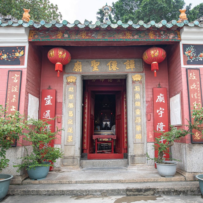 位于路环十月初五街尾,与中国大陆小横琴岛极接近。该庙建于清同治年间,距今已有百多年,是路环香火最盛的庙宇,庙内除供奉谭仙圣外,更加置有一只由鲸骨雕制而成的龙舟,是一件已有百多年历史的文物。据说摸过鲸骨会行好运,故善男信女进香后必顺便一摸龙骨。而在庙外一块刻有“鹅”字的巨形大石,亦为区内一个特色标记。