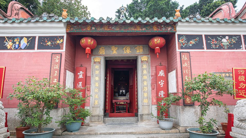 位于路环十月初五街尾,与中国大陆小横琴岛极接近。该庙建于清同治年间,距今已有百多年,是路环香火最盛的庙宇,庙内除供奉谭仙圣外,更加置有一只由鲸骨雕制而成的龙舟,是一件已有百多年历史的文物。据说摸过鲸骨会行好运,故善男信女进香后必顺便一摸龙骨。而在庙外一块刻有“鹅”字的巨形大石,亦为区内一个特色标记。