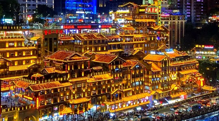 重庆城随山势由低而高,所以道路盘旋、建筑层叠起伏,入夜灯火与江水交相辉映,堪为重庆一景。有人总结说:到重庆,除火锅、美女之外,“价值百万美元的夜景”也是必看的。