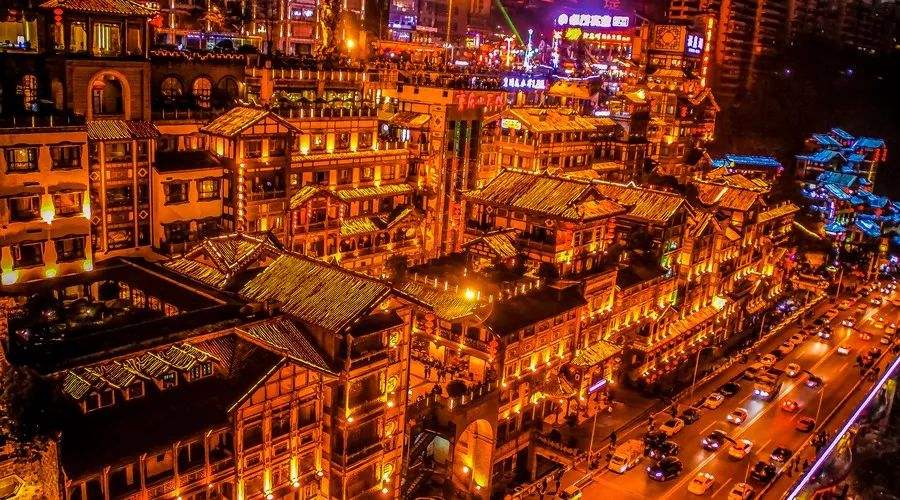 吊脚楼群,洪崖洞绝壁悬崖上的“吊脚楼群”,是独特的巴渝传统建筑。重庆洪崖洞民俗风貌区就是这一城市旅游景观的真实写照。因水而生、顺崖而长,高低错落、依山就势,让重庆解放碑步行街直达江滨,被誉为新重庆的“城市名片”。