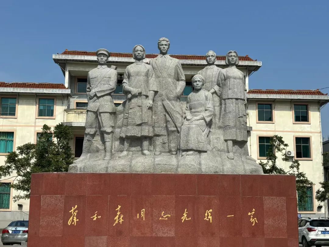 At the center of Cai Hesen Square stands a group sculpture titled "The Glorious Family of Comrade Cai Hesen," which vividly recreates the historical scene of Cai Hesen's family dedicating themselves to the revolution and embodies the red family tradition of "six outstanding members from one family."