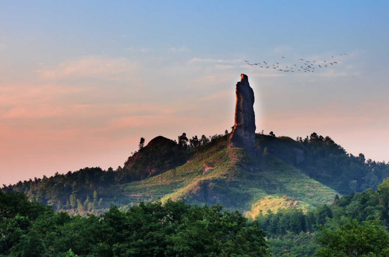 The natural-made General Stone stands on the low and flat hillside on the east bank of the Fuyi River. It is a Danxia stone pillar in the late stage of the development of the Danxia landform. It has a net height of 75 meters and a circumference of more than 40 meters. From a distance, it looks like a general wearing a battle robe, roaring to the sky and showing great power, just like the patron saint of the Fuyi River. The lifelike woodpecker stone is 90 meters high, looking like a woodpecker pecking holes to remove insects. The majestic warship stone stretches across the east and west, looking up at the Yi River. Boating on the clear water, answering love songs to each other, green mountains and green trees, and beautiful fields. Floating in the clear water of a river, meandering among strange peaks and rocks £» The water, light and mountains blend into one, and tourists enjoy themselves with fish and birds. The breeze blows, the blue waves ripple, boats travel in the river, and people swim in the paintings.