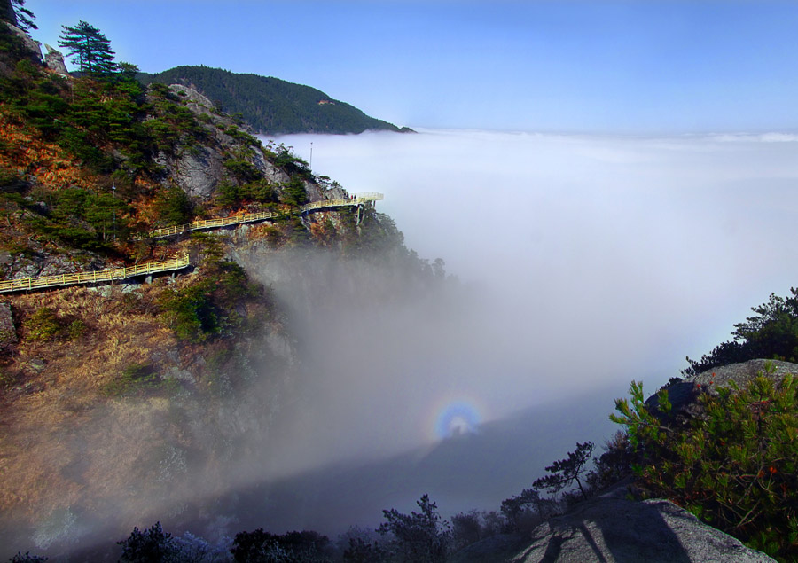 The Mingyue Mountain tourist district is situated in the yichun city of the central part of jiangxi province.The Mingyue Mountain located 15km southwest of the yichun city.The yichun city has won the the "Chinese livable city"," national garden city","national sanitary city","national model green city","the best leisure health city of china in 2010".The tourist district covers an area of some 104 square kilometres.The tourist district is made up of 12 different mountain peaks that stretch above the 1000m mark of level on the mountain,the main peak Tai Ping Shan is at an elevation of 1735.6 meters.