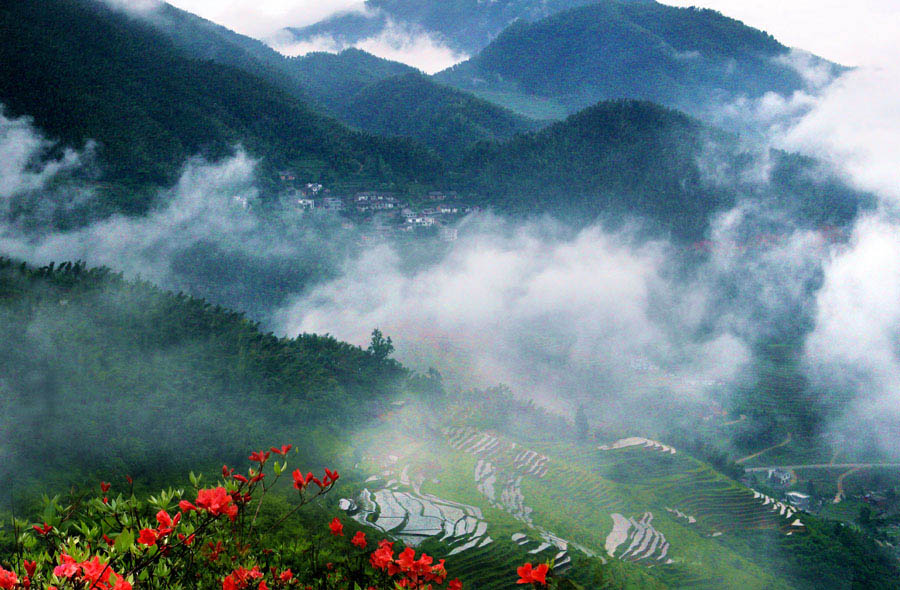 The Mingyue mountain mild climate, enjoys a subtropical humid monsoon climate, The mountains and water looks quite special.The annual average temperature is 12¡æ¡ª15¡æ.The Mingyue mountain normally averages slightly above 3 feet for an entire year,makes it possible for plants and animals to grow.is noted for natural plants and animals garden.Because the good natural style maintaining a good state,vegetation flourishing, the air negative ions whopping 20000 per cubic meter,that's 35 times greater than exposure standards set by national standards quality,what you called it "the natural oxygen bar".Now,development and infrastructural construction of TanXia scenic most advanced.There are bamboo forest over than 10000 acres.The height of the YunGu waterfall is 119.57 meters,ranked no.1 in jiangxi province.The view of the "LingLong waterfall","YunLin waterfall","YuLong waterfall",is gorgeous.