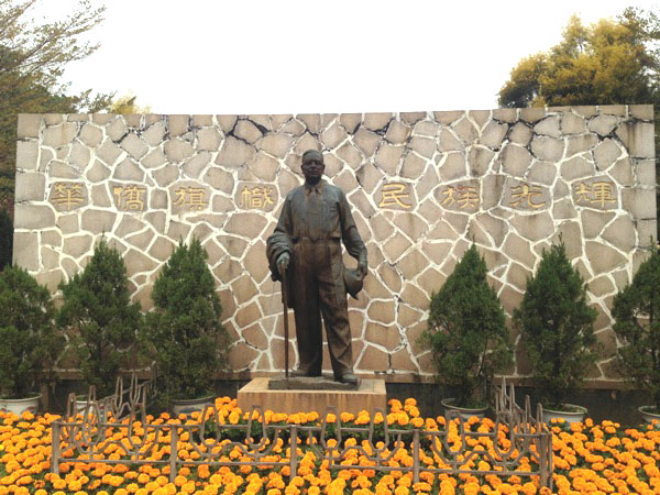 归来园占地约10000平方米,园的正中竖立着一尊陈嘉庚先生铜像,高2.3米、重750公交。铜像后方是一堵白色花岗岩砌成的屏风,上刻“华侨旗帜 民族光辉”八个金色大字,这是毛主席对陈嘉庚一生的高度评价。