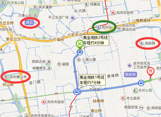 山塘街往平江路,地铁2号线(山塘街上,广济南路下,2站),换地铁1号线(临顿路3口出,3站),下车向东540米。