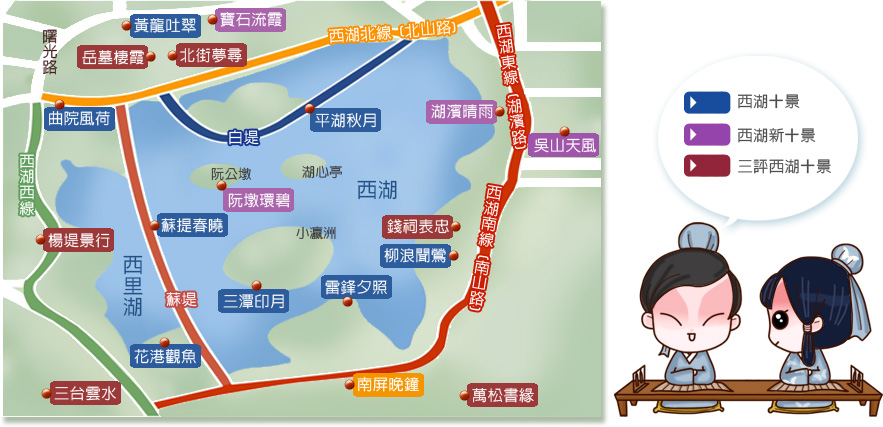 第一天:游览西湖。断桥-白堤-坐游船去小瀛洲(三潭印月)-雷峰塔-苏堤-岳王庙。晚上:西湖音乐喷泉(视情况可将景点跟第二天的调换)