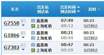 从嘉兴南乘坐高铁,到达上海虹桥站。历时约23分钟,单人费用:29.5元。两人:59元。