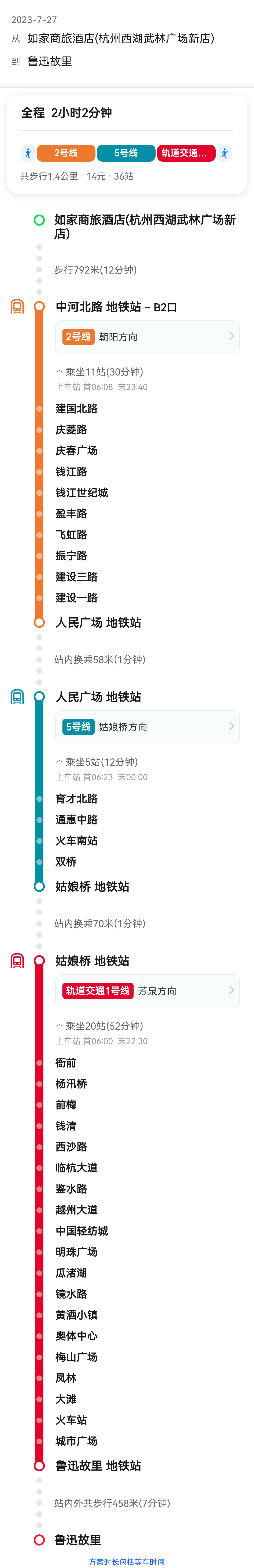 从武林广场乘坐地铁1号线(湘湖方向,城站 换乘)/地铁2号线(朝阳方向,人民广场站换乘),转5号线(姑娘桥方向)到姑娘桥,然后乘坐轨道交通1号线(芳泉方向),到达鲁迅故里地铁站。