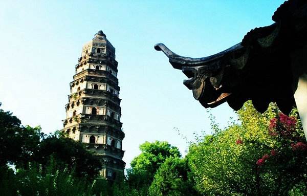虎丘,原名海涌山,据《史记》载吴王阖闾葬于此,传说葬后三日有“白虎蹲其上”,故名。虎丘占地虽仅三百余亩,山高仅三十多米,但却有“江左丘壑之表”的风范,绝岩耸壑,气象万千,并有三绝九宜十八景之胜。最为著名的是云岩寺塔和剑池。高耸入云的云岩寺塔已有一千多年历史,是世界第二斜塔,古朴雄奇,早已成为古老苏州的象征。剑池幽奇神秘,埋有吴王阖闾墓葬的千古之谜以及神鹅易字的美丽传说,风壑云泉,令人流连忘返。