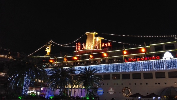 “海上世界”原为法国建造的一艘豪华游轮,原名ANCEVELLER,由著名的法国委纳译尔大西洋船厂建造,船高9层,长168M, 宽21M,排水量为14000吨。