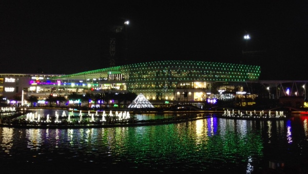 音乐喷泉360度全景盛放,无论在广场、明华轮、shopping mall的哪个角度,游人都可以信步游走驻足观看