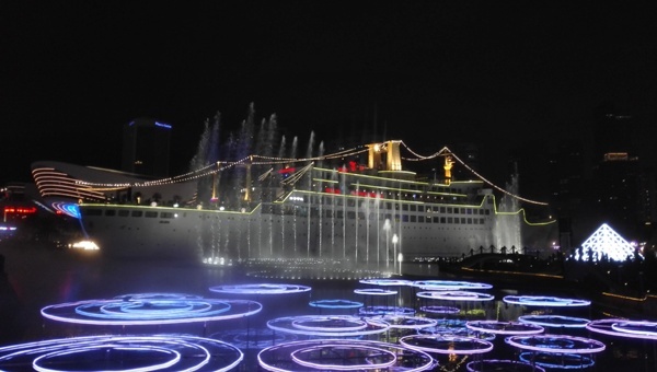 深圳海上世界全景水秀位于海上世界C区、明华轮船后的水景广场,由招商地产投资3000万打造。