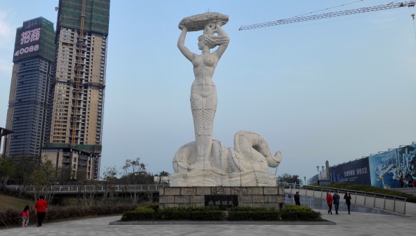 在蛇口,以上古神话为主题的大型雕塑有两处:一是南海酒店的浮雕“后羿射日”;另一个,就是六湾海滨的圆雕“女娲补天”。