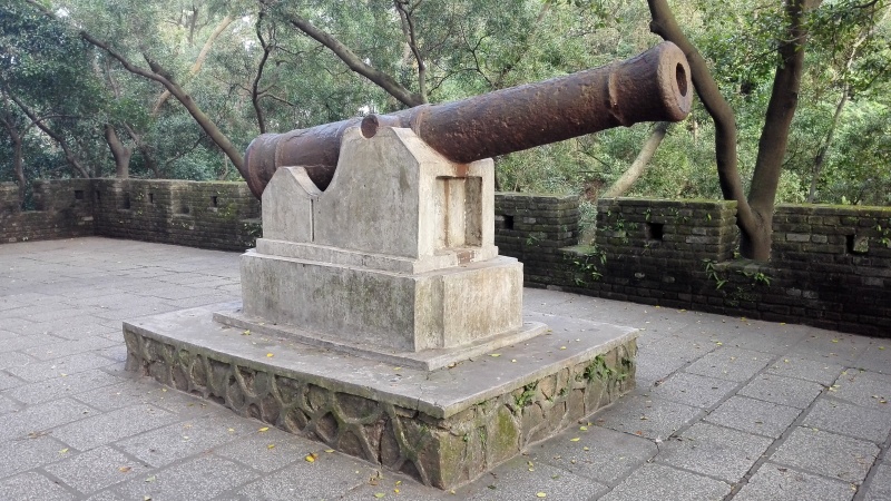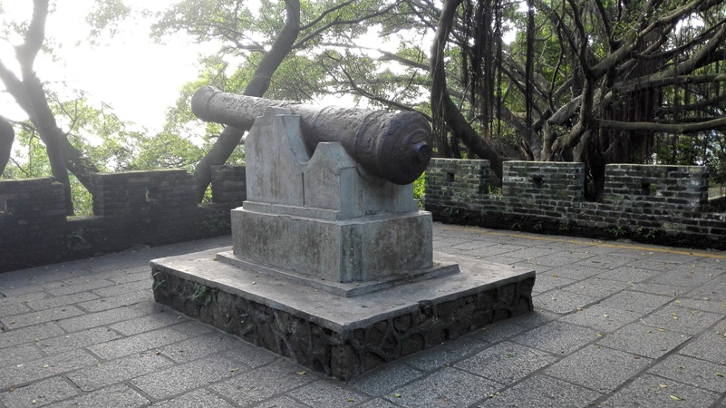 左炮台是在鹰嘴山上. 里面有当年守炮台士兵的营房(兵房, 官房, 神堂, 厨房, 弹药库). 左炮台坐北朝南, 长方形, 地基是花岗岩做的. 上部是青砖的. 做工很结实呢!在炮台旁边有颗106年的老榕树, 你可以摸一摸, 感受下岁月和历史.