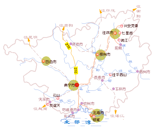 广西简介 广西壮族自治区位于华南地区西部。战国为百越地,秦分属桂林、象两郡,汉属交州。唐属岭南道,宋分广南西路、东路,由简称得广西政区名。元属湖广行省,明改广西布政使司,清初为广西省。1958年设广西壮族自治区。因秦时为桂林郡辖地,故简称桂。首府南宁。 广西主要旅游城市之间的距离桂林——阳朔:64公里桂林——龙胜:102公里南宁——北海:191公里 广西旅游简图 领略广西