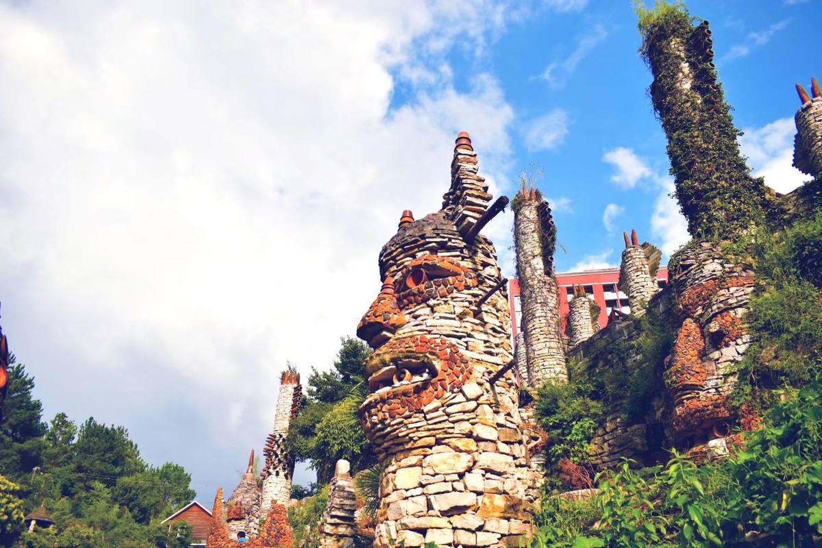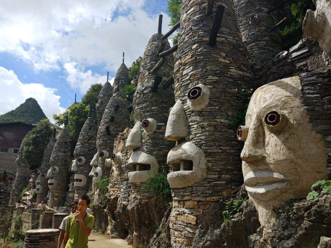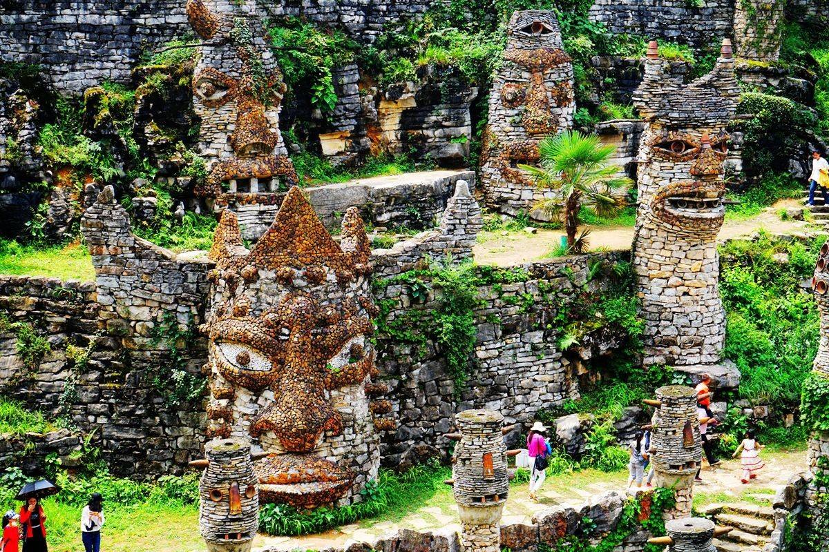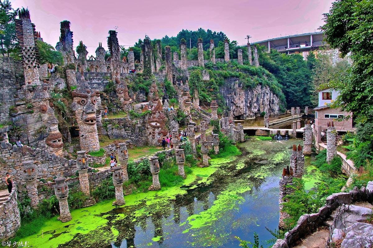 这么大一座夜郎谷,是由艺术工作者宋培伦运用自己独具匠心的构思和创意,经过20余年建造的。
