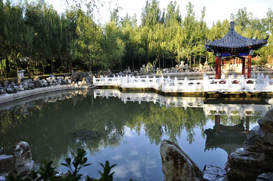 1、以纪晓岚字“春帆”命名的“春帆湖”,利用水塘建成。湖上修筑了湖心亭,取名“观弈亭”,曲栏、水榭,拱桥等,西岸建有方形轩,取名“黄梁轩”,北侧有荷花池,堆砌了假山;