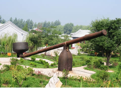 此外还要建几处供游人休憩、观光、照相的场所,增加游园的乐趣。设计了大烟袋、钻钱眼的趣味场所;还设有经营纪念品的店铺,帮助游人进行文化留念。