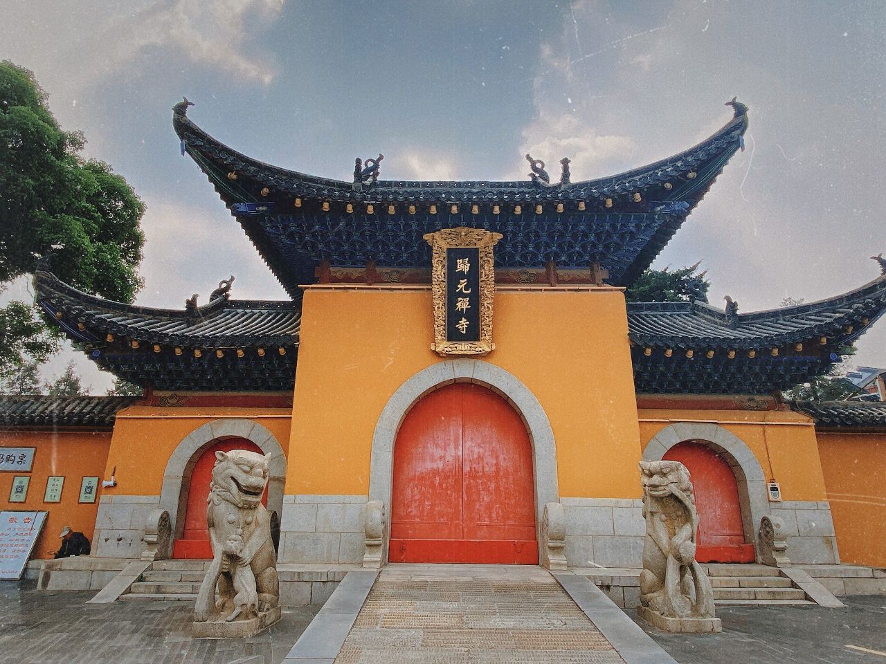 山门为古典式的八字门形式建筑,朝阳而开,象征吉祥。归元禅寺山门前的石狮,连座共高2.3米,原镇守在汉阳县衙、府衙门前,是明代遗物。武汉解放之后,汉阳显正街的衙门撤销,信众将被弃下的石狮合力搬到了归元禅寺。