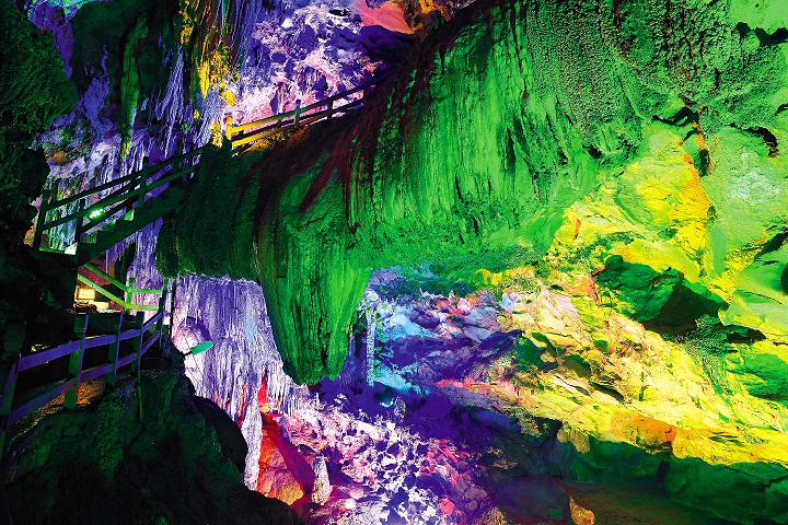 龙宫仙苑位处第五层洞穴,是已开发的最高一层它是最年青的一个景区,洞穴钟乳石处在发育期,晶莹透亮的鹅管极其珍贵,是梅山龙宫真正的宝库。