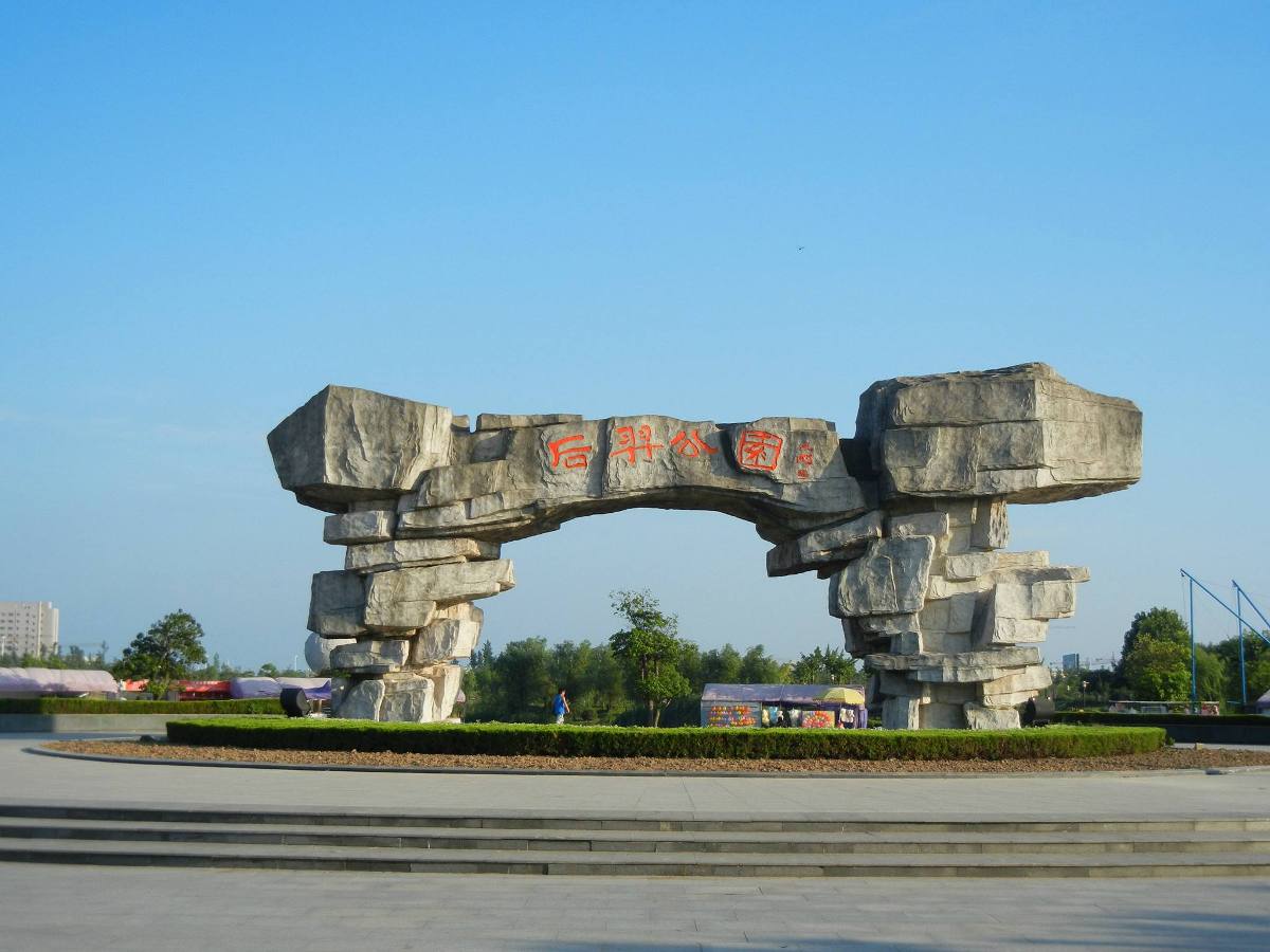 后羿公园,按照开放式生态型的定位规划建设,以后羿传说为主线,以生态公园为主题,由五个广场、五大景区、八个休闲项目围合260多亩水面而形成。公园主、次入口以及射日广场,蕴含着丰富的后羿文化,营造了独具射阳特色的文化品牌。公园科学配置了银杏、樱花等100多种花草树木,最大限度地采取生态护坡、生态隔离技术,采用原生石材、原生木材,采用植物造景、植物造型,做足生态文章,打造生态品牌。