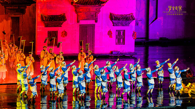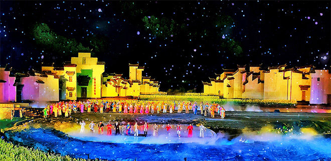 【梦里老家】大型山水实景演出,总投资2.8亿元,以千年徽州文化为背景,依托婺源自然山水,采用最先进的声、光、电科技手段,在春夏秋冬四季轮回中,演绎了徽商创富的艰辛历程、坚贞不渝的爱情绝唱、科举辉煌的兴盛和睦、淡泊归隐的人生境界,是婺源之旅非看不可的演出。