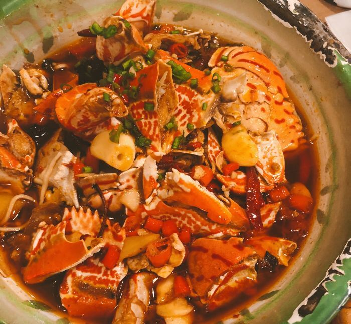 南昌"老三样"小吃店招牌菜,那就是鲜虾花甲、辣烧鹅掌筋、香辣蟹炒年糕。
