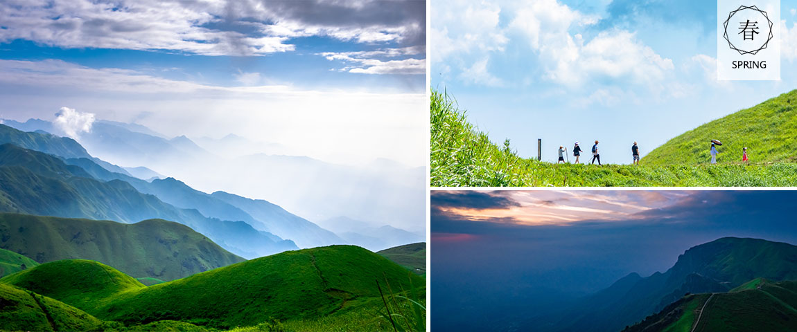 萍乡武功山风景名胜区位于江西省萍乡市东南部,属湘赣边界罗霄山脉北段,是江西省西部旅游资源最为丰富的大型山岳型风景名胜区,历史上曾与庐山、衡山并称江南三大名山,有“衡首庐尾武功中”之称。武功山主峰白鹤峰(金顶)海拔1918.3米。