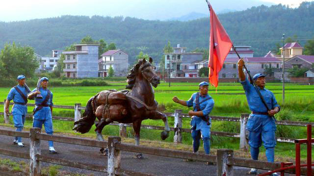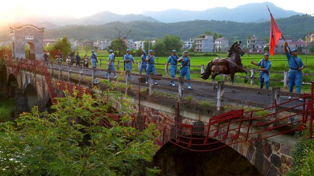 望月亭又是著名红歌《十送红军》的原唱地,其中歌里提到的“十送(里个)红军(介支个)望月亭,望月(里个)亭上(介支个)搭高台,台上(里个)十丈白玉柱,雕龙(里个)画凤放(呀)放光彩,早也盼晚也盼,红军啊……”就是这座望月亭。