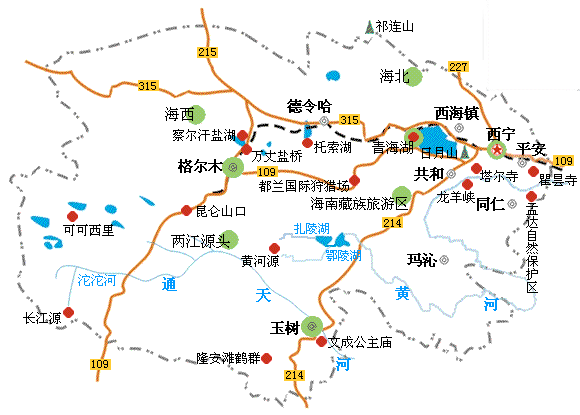 青海简介 青海省位于西北中部。古为西羌居地,汉设郡,隋设二郡,唐、宋属吐蕃。元多属,明为西番地,清多属。1928年置青海省,因境内青海湖得名,简称青。省会西宁。 青海主要旅游城市之间的距离西宁——玉树:825公里西宁——兰州(甘肃省):227公里西宁——格尔木:83公里 青海旅游简图 领略青海