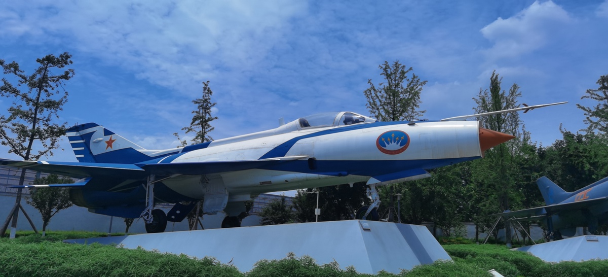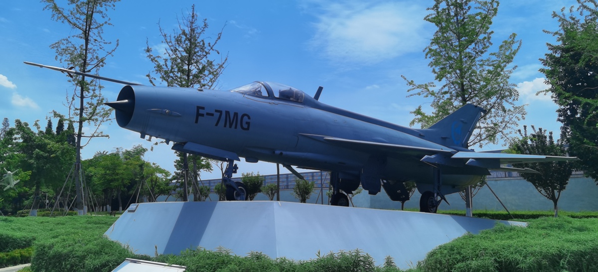 歼7E是航空工业成飞与西北工业大学合作研制改进的歼击机,首次采用带前后缘机动襟翼的双三角机翼,飞机的综合性能得到显著改善,于1990年5月18日首飞,后成为中国空军的主力机种,是歼7系列飞机发展中的又一个重要里程碑。1997年,荣获国家科学技术进步二等奖。歼7E衍生型歼7EB于1995年成为中国空军八一飞行表演队的表演机,有红白涂装和蓝白涂装。