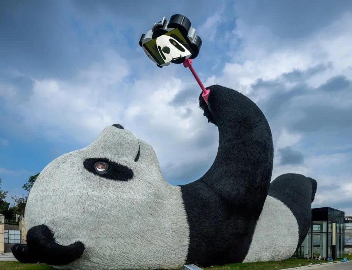 “自拍熊猫”是由澳大利亚昆士兰设计公司UAP与荷兰艺术家佛洛伦泰因·霍夫曼为都江堰打造的标志性主题公共艺术品,于2021年4月在仰天窝广场向市民、游客开放。长26米、宽11米、高12米,重130吨……“自拍熊猫”一亮相,就成为都江堰的新晋网红打卡点。