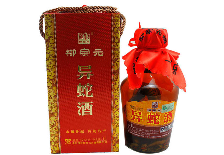 永州异蛇酒是用永州特产之异蛇,配以多种名贵中草药及陈酿粮酒,在历代民间秘方基础上,采用现代工艺,生浸活蛇精制而成。该酒祛风除湿、舒筋活骨,对风湿骨痛、手脚麻木有显著功效,并能提高人体免疫能力。它结合古代的特色,对不同的人有不同的药材,适合各年龄的人