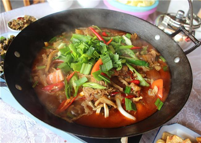 如今张家界的三下锅不再是腊肉、豆腐、萝卜一锅煮,多为肥肠、猪肚、牛肚、羊肚、猪蹄或猪头肉等选其中二、三样或多样经过本地的土厨师特殊加工成一锅煮。也许是混和的原因,三下锅的味道确实很特别。令人回味无穷!