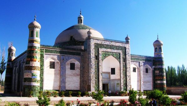 香妃墓坐落在喀什市东郊5千米的浩罕村,是一座典型的伊斯兰古建筑群,也是伊斯兰教圣裔的陵墓,占地2公顷。