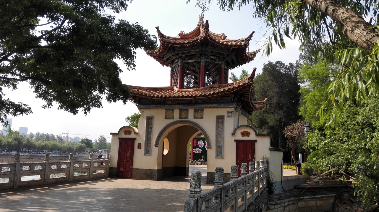 大观楼是中国四大名楼之一,位于昆明市近华浦南面,三重檐琉璃戗角木结构建筑。大观楼始建于康熙年间,因其面临滇池,远望西山,尽揽湖光山色而得名。