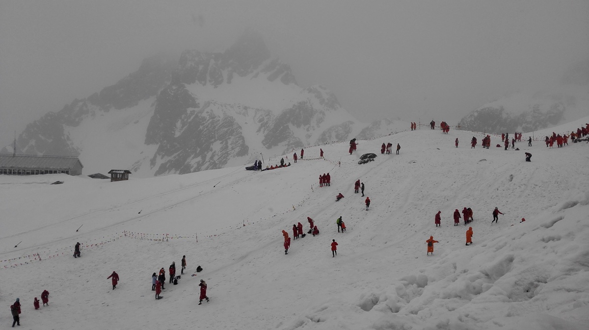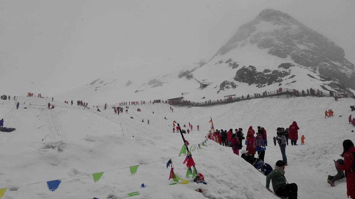 去雪山都要穿羽绒服,坐索道,体质差的人还需要氧气瓶,以便应对高原反应!一般这些都包含在旅行费用里了的!