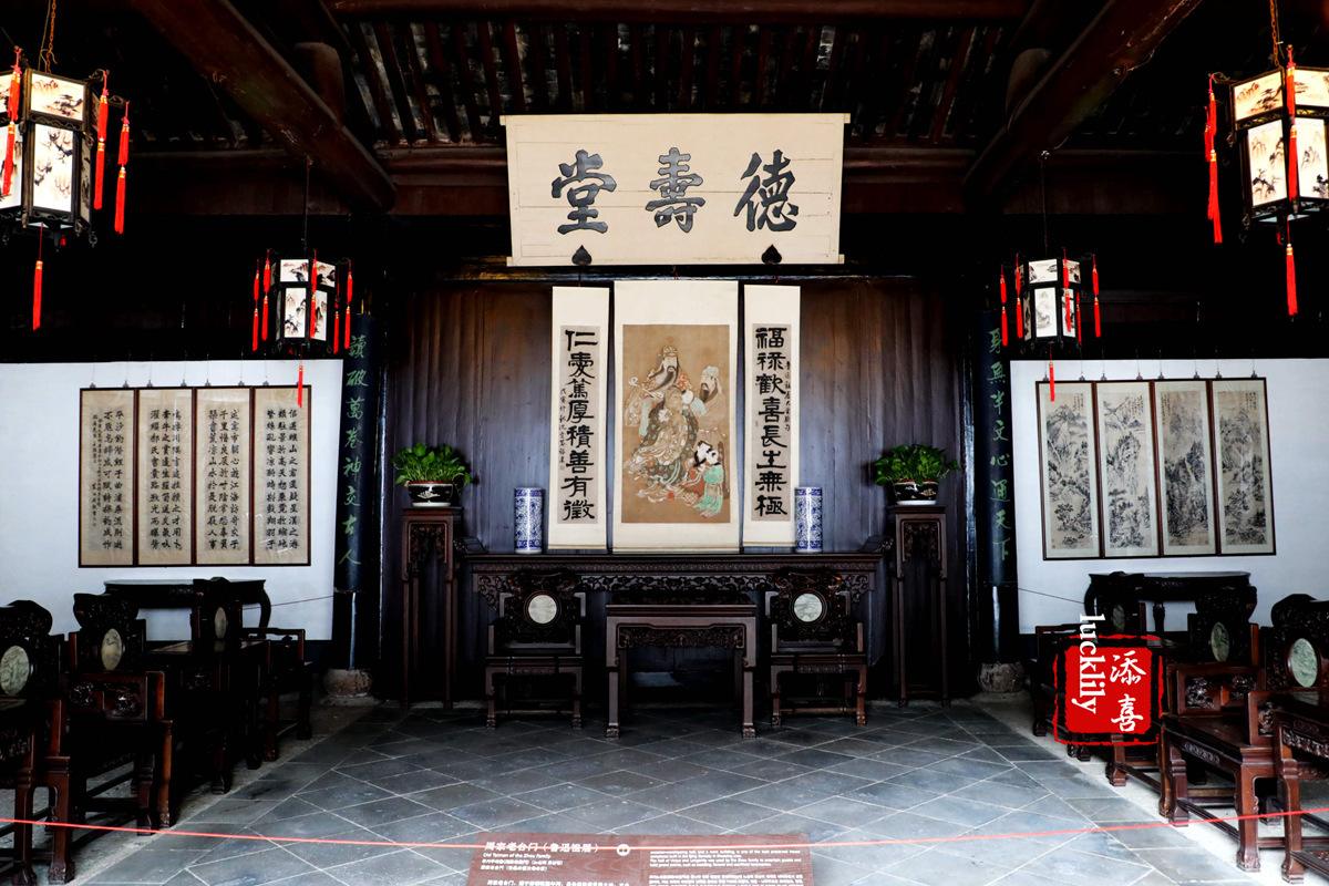 周家老台门,建于清朝乾隆年间,是鲁迅祖辈世居之地。它坐北朝南,青瓦粉墙,砖木结构,由门厅、大厅、香火堂、座楼等组成,是目前绍兴保存最为完好的清代台门建筑之一。“德寿堂”系周家接待来访宾客及举行婚丧、祭祀等大型活动的场所。