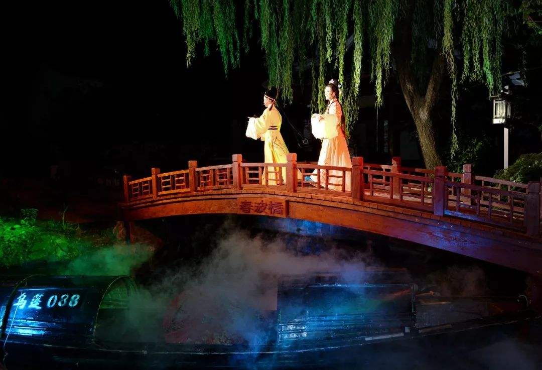 鲁迅故里•沈园景区精心打造了绍兴夜间旅游品牌——“沈园之夜”古典夜游。夜幕下的沈氏园色彩斑斓又清雅古典,若隐若现的灯光交相呼应,园林景致疏密有致,花木扶疏相应成趣,游客漫步其中如梦如幻。夜游沈园可以细细领略爱情名园风采,还可以欣赏《沈园情》堂会表演。
