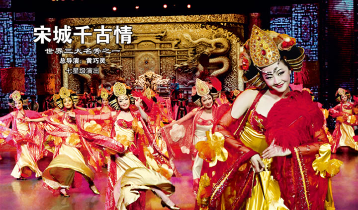 大型歌舞《宋城千古情》是宋城的灵魂。与拉斯维加斯的O秀、巴黎红磨坊并称“世界三大名秀”,金戈铁马,美女如云。置身宋城,恍如隔世。给我一天,还你千年!