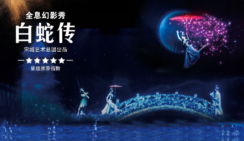 通过全息投影成像技术、巨幕、声光电等高科技手段和舞台机械,演绎中国民间四大爱情故事之一《白蛇传》的凄美爱情传说,再现了白蛇许仙断桥相会、水漫金山等经典片段,带给观众强烈的视觉冲击和心灵震撼。