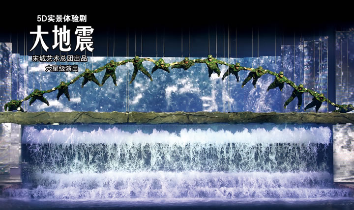 5D实景体验剧《大地震》全新改版,运用5D高科技手段再现512汶川大地震的惨烈场面和中华民族抗震救灾的大爱无疆。游客化身护士、解放军战士、消防员,参与抗震救灾,我们都是了不起的英雄。