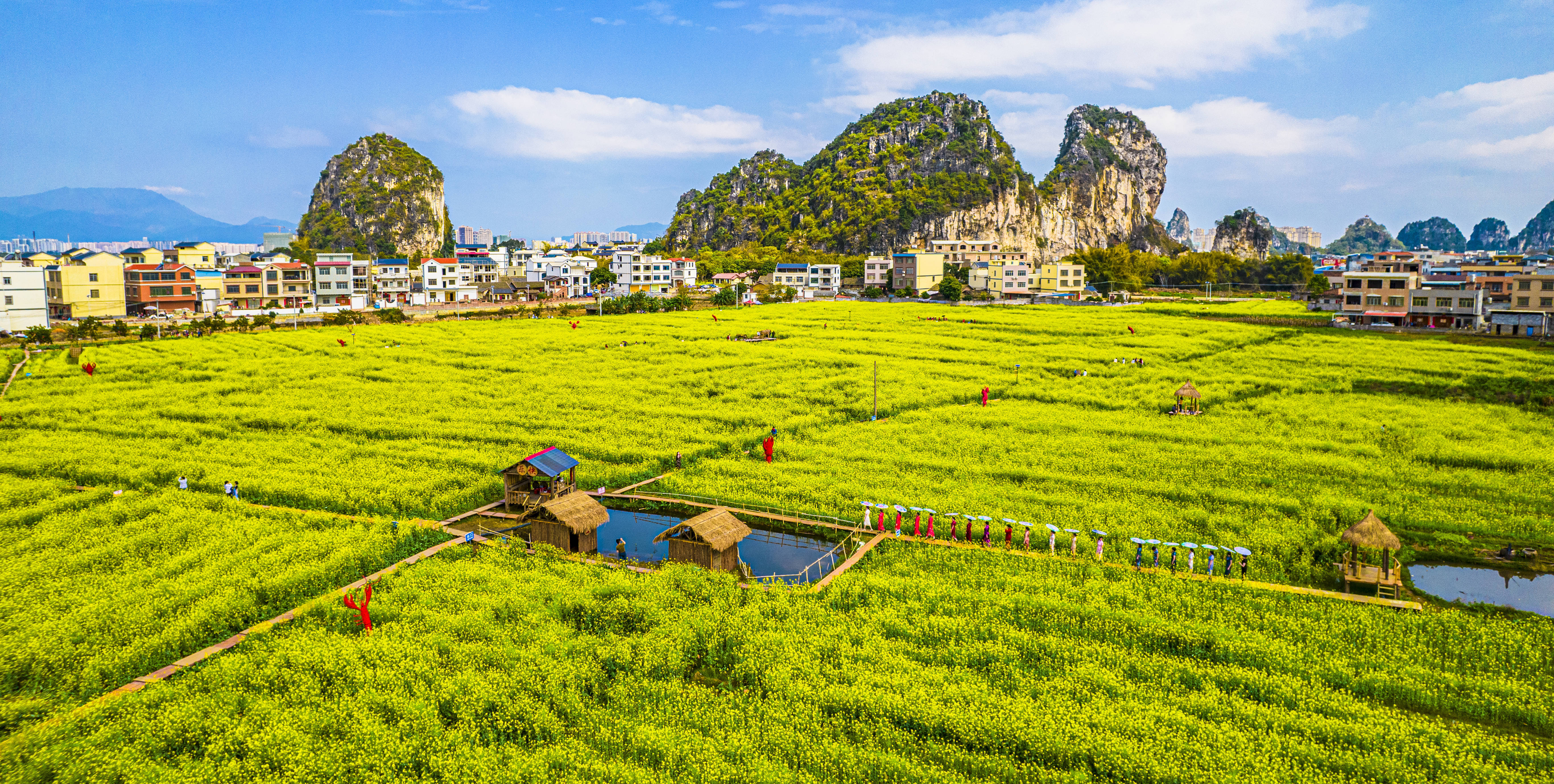 山边旅游区于贵港市港南区,国家3A级旅游景区,主要景点有龟山风景区、文创核心区、花鸟大世界、生态农业观光区、休闲垂钓区、油菜花公园等,配套有精品民宿、特色农家乐,是乡村旅游热门打卡地。景区所在地新塘镇山边村是全国文明村,2022年5月被推荐为“中国美丽休闲乡村”。
